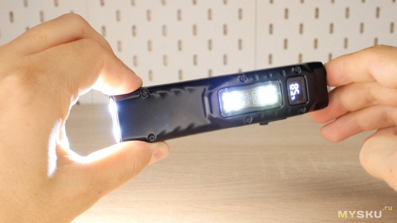 Мне нравится продукция Nitecore и периодически на глаза попадались модели EDC23-EDC29, но жаба не позволяет покупать фонарики по 100+ долларов/ Nак что пришлось ждать когда менее известные бренды начнут копировать данную линейку и первые клоны уже появились. Один из них Bikight DT007, который внешне похож на EDC23, но на лицевую сторону добавили дополнительную панель для освещения небольшой площади где-нибудь в палатке. На дисплее отображается только уровень заряда и индикация зарядки, но вот основные диоды светят на удивление неплохо.