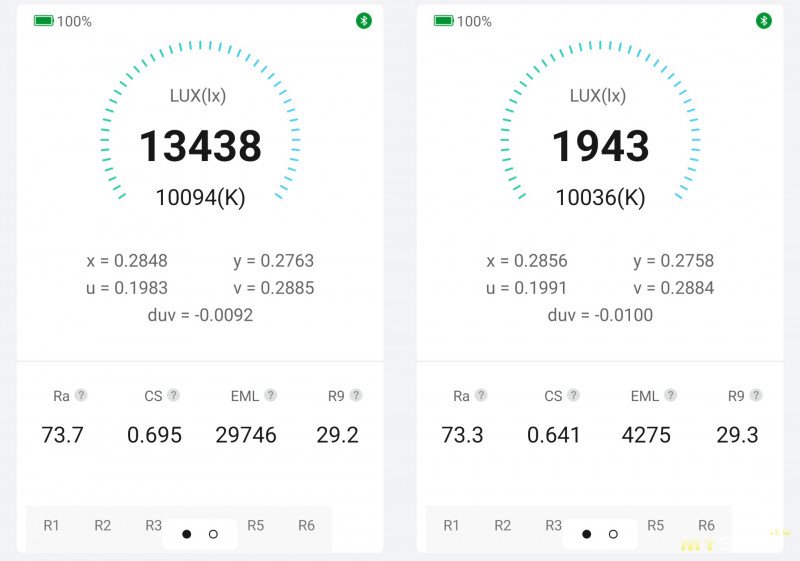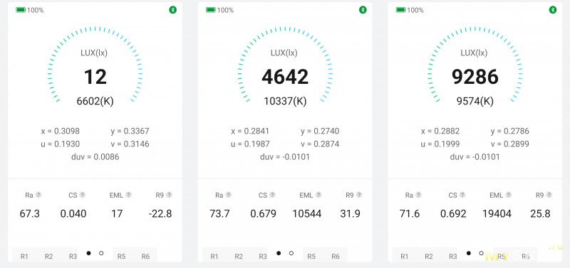 Измерение яркости производил с расстояния один метр, используя Light Master. Боковая белая подсветка выдала 12 люкс, основной свет в режиме низкой интенсивности около 4600 люкс, в режиме высокой интенсивности около 9300 люкс.