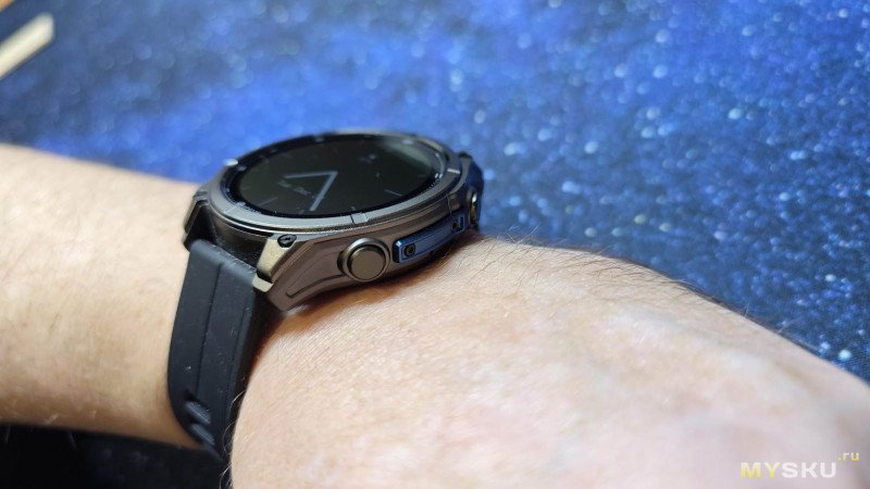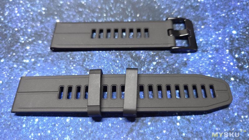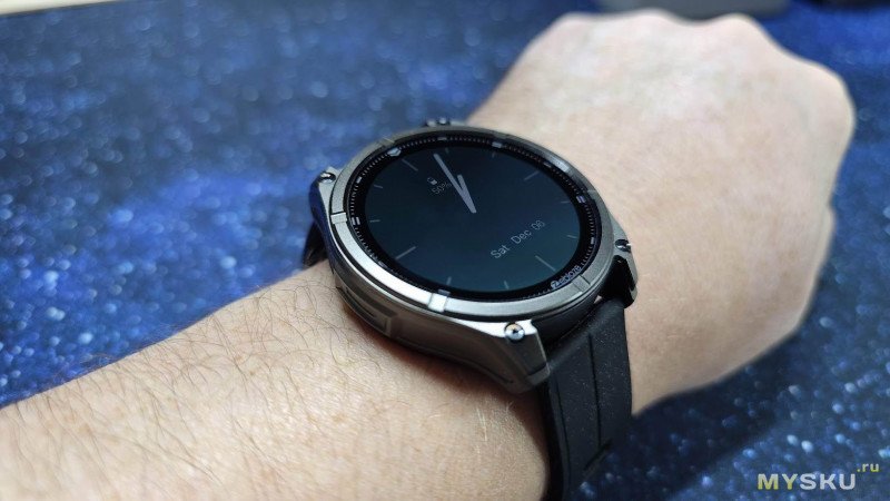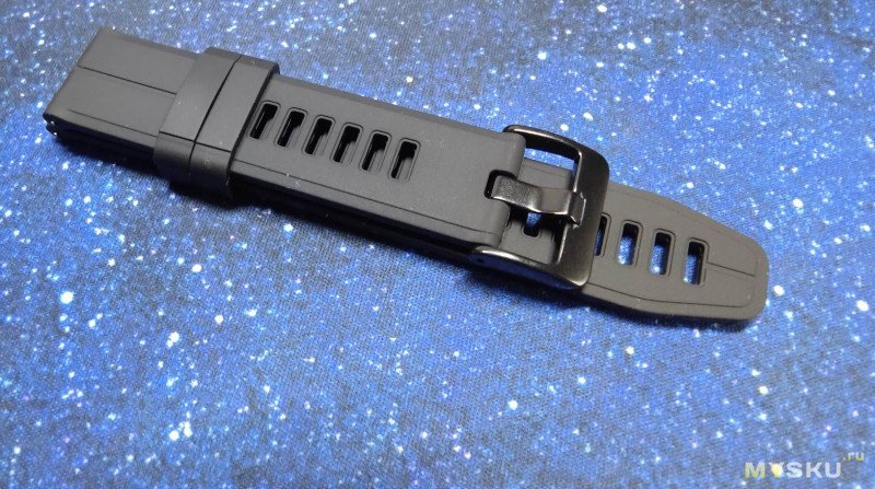 Ремешок самый простенький — стандартный силиконовый с металлической пряжкой и двумя тренчиками. При желании его можно заменить на любой другой с шириной 22 мм. Я бы вообще предпочёл металлический браслет, правда к такому тёмно-серому цвету корпуса будет сложно найти подходящий.