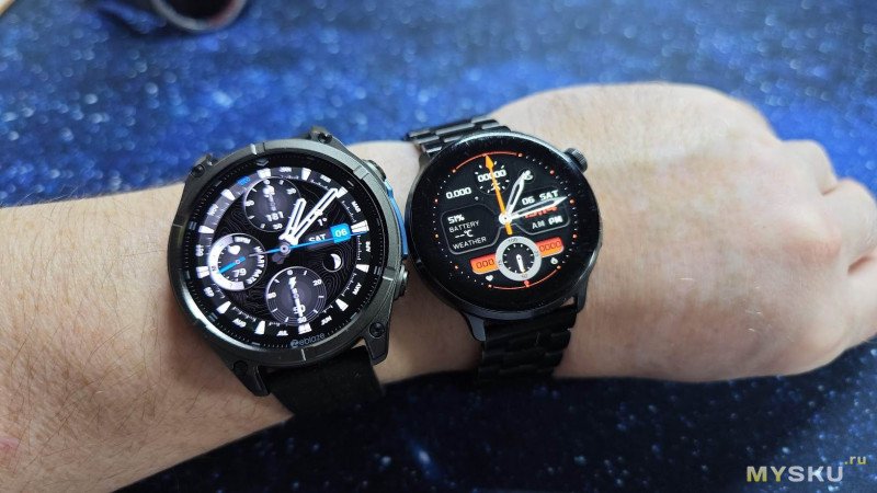 Есть ещё один хронограф, один стрелочный и один спортивный циферблат.
