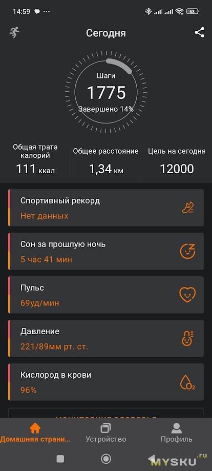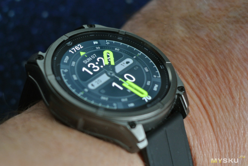 Часы оснащены современным биометрическим датчиком OHR Fusion для сбора разнообразных данных о состоянии организма: пульсометр с постоянным мониторингом сердечного ритма, а также измерение пульса в состоянии покоя; отслеживание и анализ качества и продолжительности сна; измерение уровня кислорода в крови (SpO2). Данные измерения часы проводят вполне корректно.