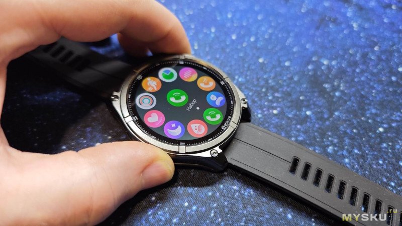 Снимаем её и видим большой экран с диагональю 1.43 дюйма и Ultra HD AMOLED-дисплеем с разрешением 466 × 466 пикселей. Брутальности часам добавляет рельефный декоративный безель с подэкранной разметкой часовых и минутных делений. Корпус часов изготовлен из нержавеющей стали марки 316L. Это низкоуглеродистая, аустенитная нержавеющая сталь, улучшенная добавлением молибдена, что значительно повышает её стойкость к коррозии, особенно в хлоридных и агрессивных средах, а также при повышенных температурах; «L» означает низкоуглеродистость, что обеспечивает отличную свариваемость без риска межкристаллитной коррозии. Такая сталь широко применяется в пищевой, медицинской (хирургические инструменты, имплантаты), химической промышленности, судостроении и архитектуре, а её российский аналог – 03Х17Н14М3.