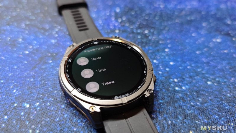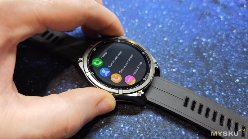 Отсюда же можно включить и Bluetooth-звонки. Звонить можно как избранным контактам, так и набирать номер телефона непосредственно на клавиатуре часов. Звук динамика не очень громкий, но микрофон достаточно чувствительный, на том конце абонент слышит голос хорошо.