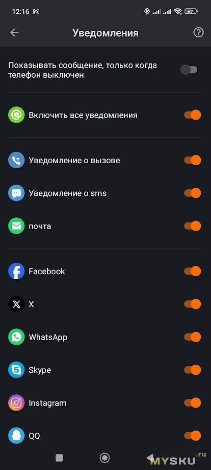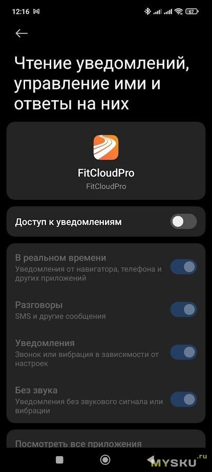 В FitCloudPro можно очень тонко, буквально для каждого, включая системного приложения, настроить получение уведомления на часы.