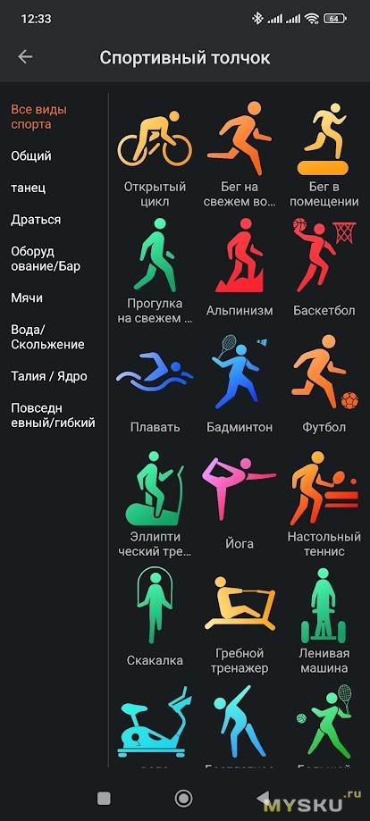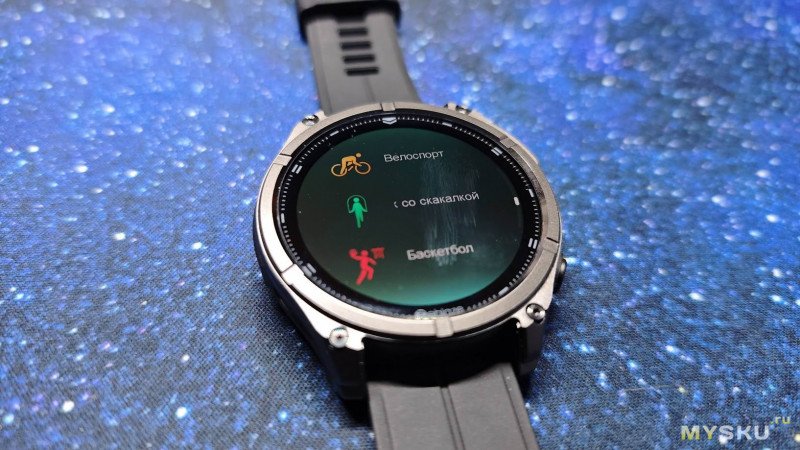 Основные спортивные режимы встроены непосредственно в систему часов для быстрого доступа. Это 8 базовых видов спорта: ходьба, бег, скалолазание, велоспорт, баскетбол, футбол, бадминтон скакалка.