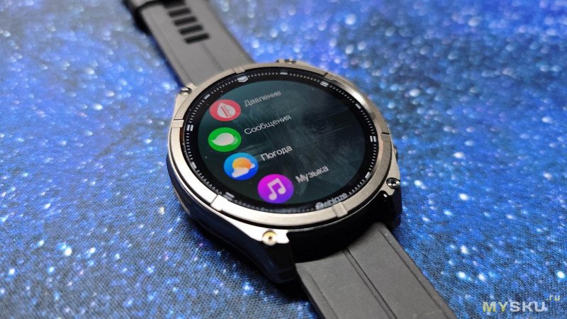 Управление смарт-часами осуществляется с помощью комбинации нажатий на сенсорный экран и двух физических кнопок, функционал которых можно частично настраивать.