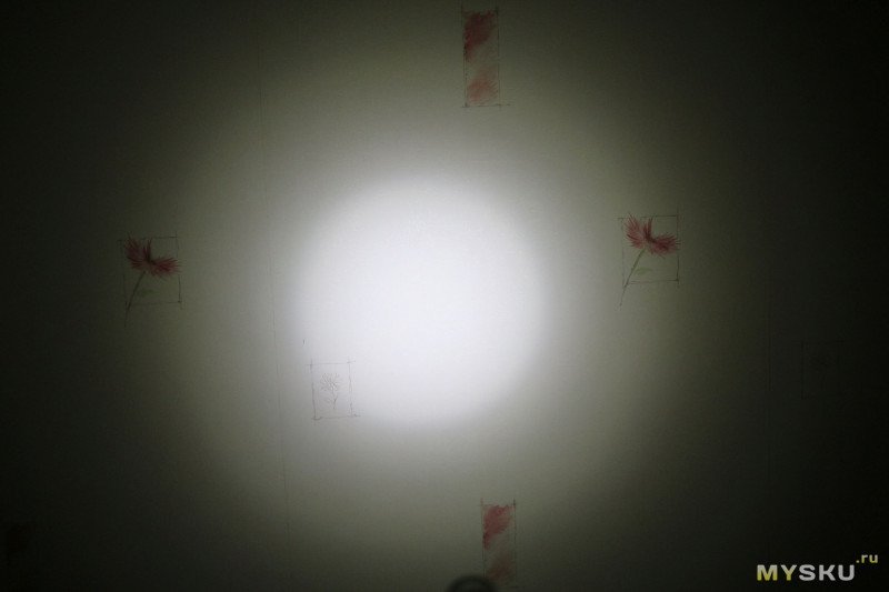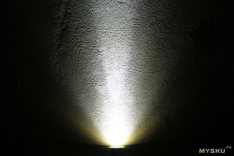 Основной свет холодный, но ближе к нейтральному — примерно 5500К. Луч с выраженным крупным хотспотом и достаточно широкой боковой засветкой, такой свет можно охарактеризовать как универсальный.