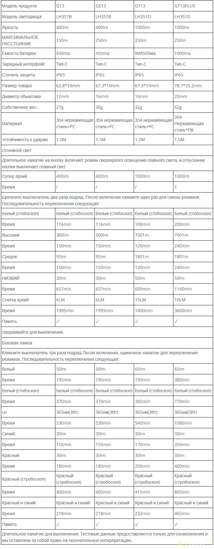 На странице товара предлагаются три модели — чуть поменьше героя обзора, но с меньшей емкостью аккума и яркостью; и значительно больший, но и с характеристиками заметно выше. Я выбрал все же тот, что еще может влезть в зажигалочный карман джинс.