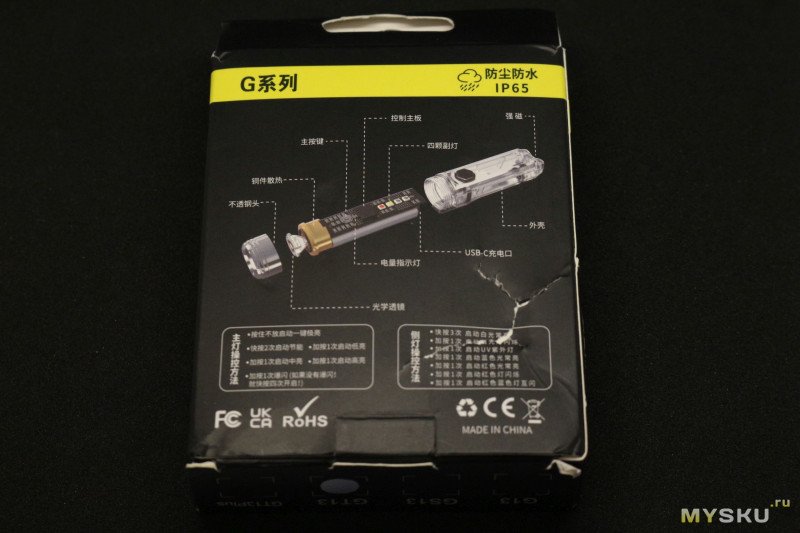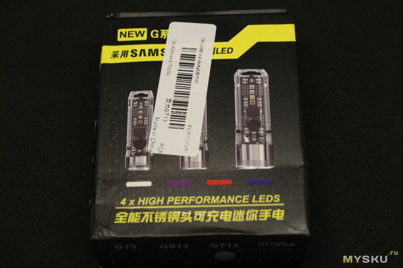 Упаковка общая для всех моделей. На коробке прямо указан производитель основного светодиода — Samsung (в характеристиках почему-то назвали только модель светодиода, без упоминания самсунга). На обороте — взрыв-схема фонаря.