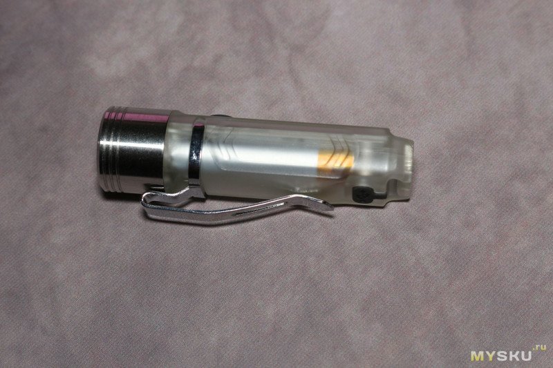 Перед головой есть углубление для установки клипсы, ее положение позволяет крепить фонарь на козырек бейсболки, получается типа налобник.