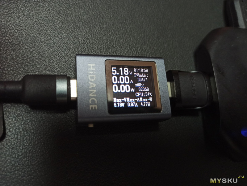 После отключения фонарь заряжался чуть больше часа, залилось 470 мАч.