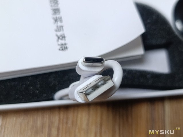 В комплект входит сама колонка, инструкция англ+кит и зарядный кабель Type-C, длиной 30 см.