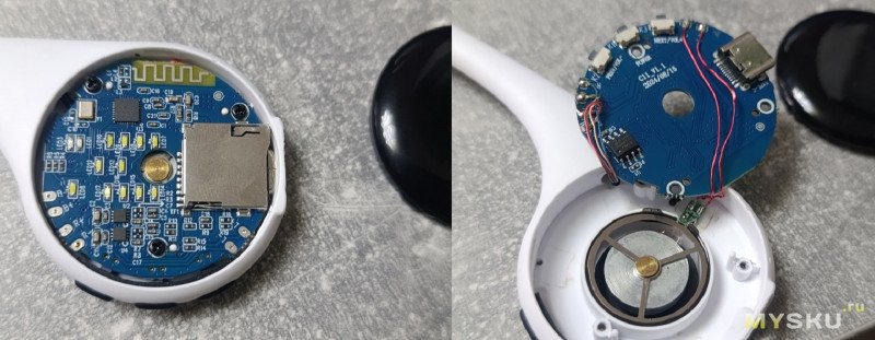 Под правой крышкой расположена плата с кнопками управления и разъемами, под платой находится правый излучатель.