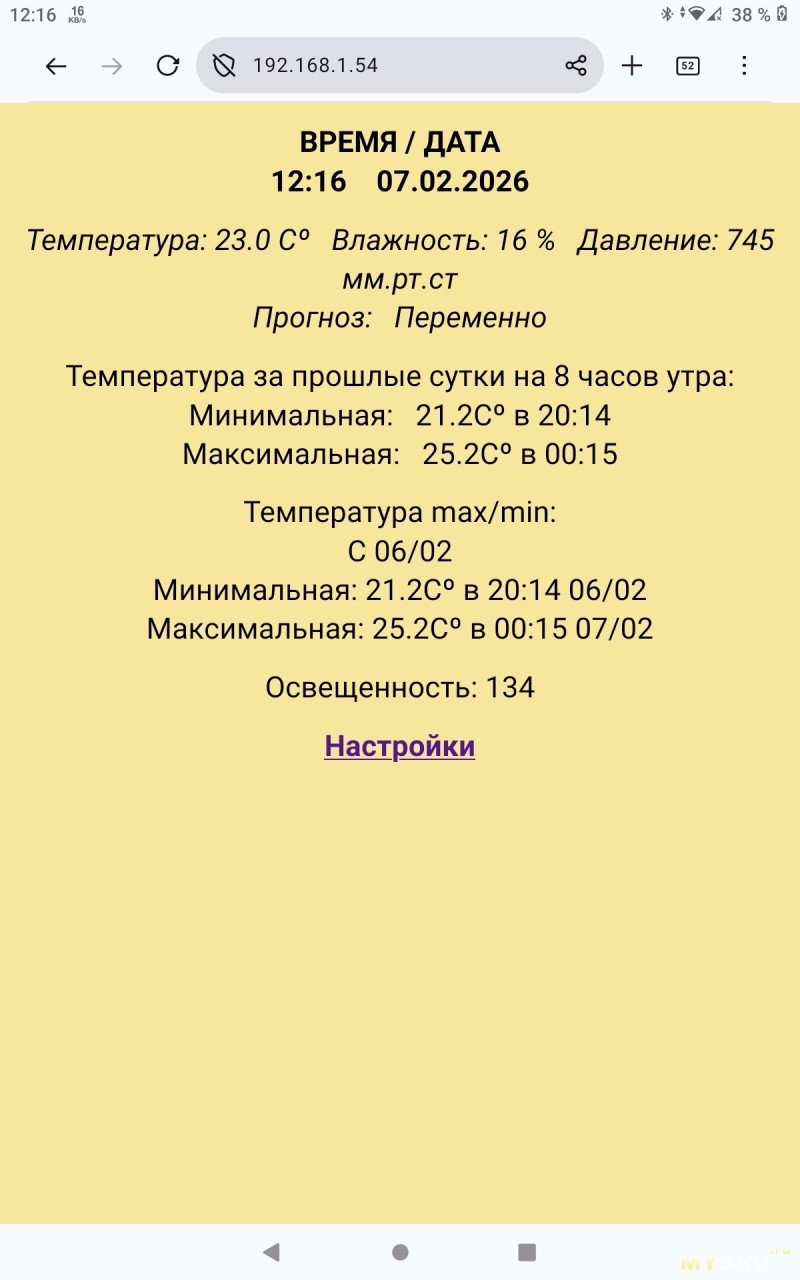 - Время / Температура / Дата / День недели.