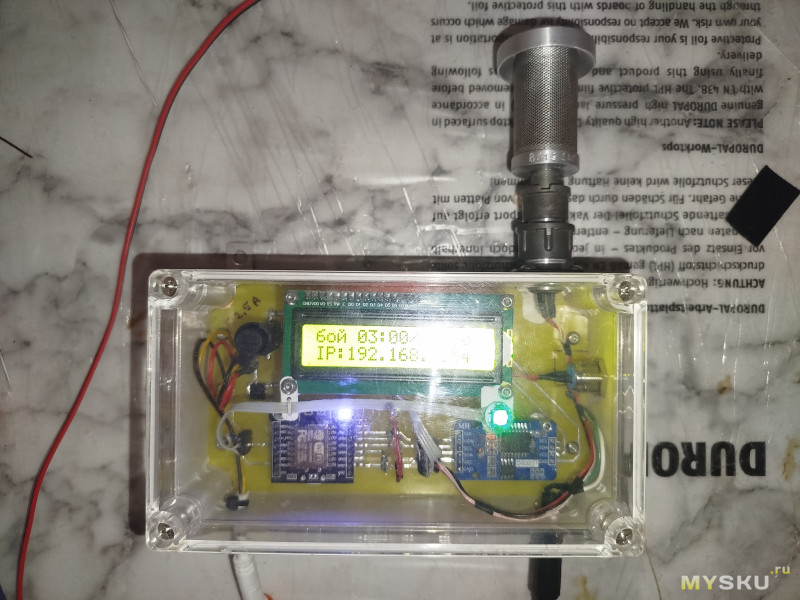 На дисплее можно посмотреть время и температуру, время работы рынды и IP. Кнопка используется для включения подсветки, переключением м/у страницами дисплея и вкл/выкл WiFi.