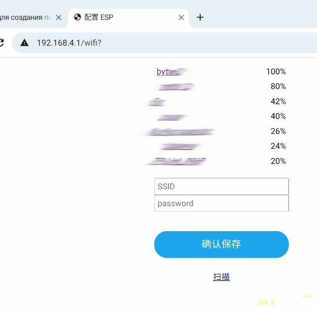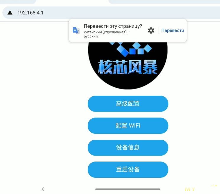 После подключения открываем браузер и переходим по адресу 192.168.4.1, там нас встречает страничка с прекрасным китайским интерфейсом.