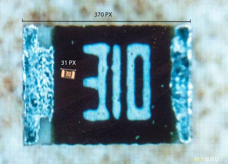 Судя по фоткам SMD резистора, увеличение этого увеличителя на максимуме равно 11X.