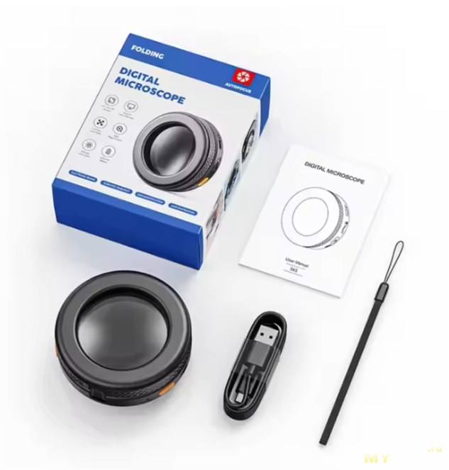 В комплекте «микроскоп», кабель Type-C для зарядки/передачи данных и инструкция.
