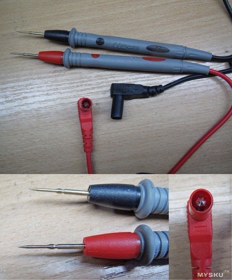 Щупы для мультиметра — тоже обычный ПВХ с тонкими иглами. Длина 102см, сопротивление 0.133Ом