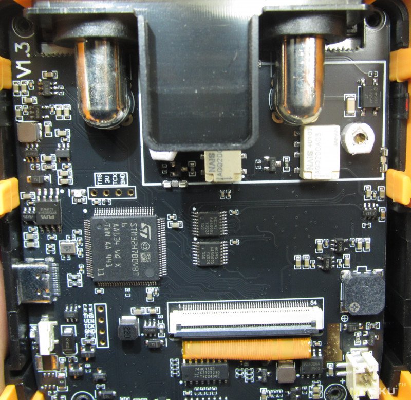 Чисто внешне — оч хорошо. Плоское стекло (легко наклеить защитную пленку), кнопки прямого выбора режимов (осциллограф, мультиметр, генератор, просмотр картинок). Правда желтые резинки — это отдельные детали, довольно тонкие и мягкие. Впрочем, некоторые считают что это хорошо. Гнезда мультиметра имеют очень толстые внутренние изоляторы, щупы входят очень туго