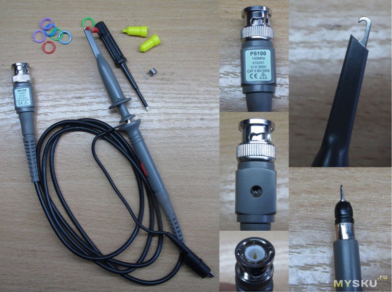 Осциллографические щупы маркированы P6100 100MHz — и по факту там этого нет, и имеют длину 124см. Так что если будете покупать — берите с одним щупом, и докупайте нормальные отдельно.
