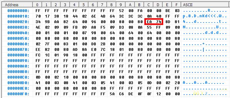 содержимое епромки. обвел значения калибровочных параметров для мА. зачем — увидите дальше.