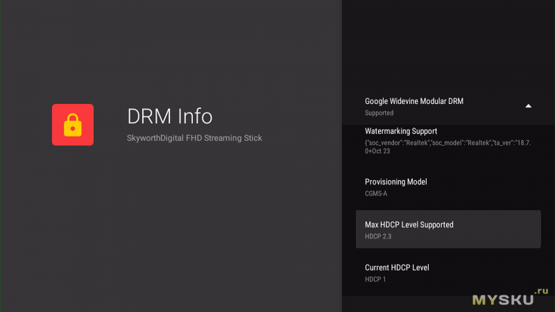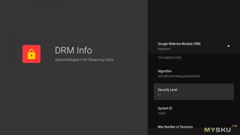 Security Level — L1, MAX HDCP Level Supported — HDCP 2.3