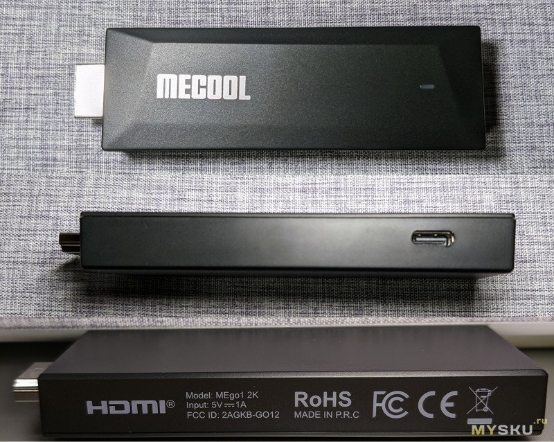 Стик — аболютно идентичный 4K-модели, он компактный, 100мм*30мм*15мм. Имеет всё тот же строгий, но в то же время стильный угловатый дизайн, синий светодиод на корпусе, а так же USB Type-C, с поддержкой OTG.