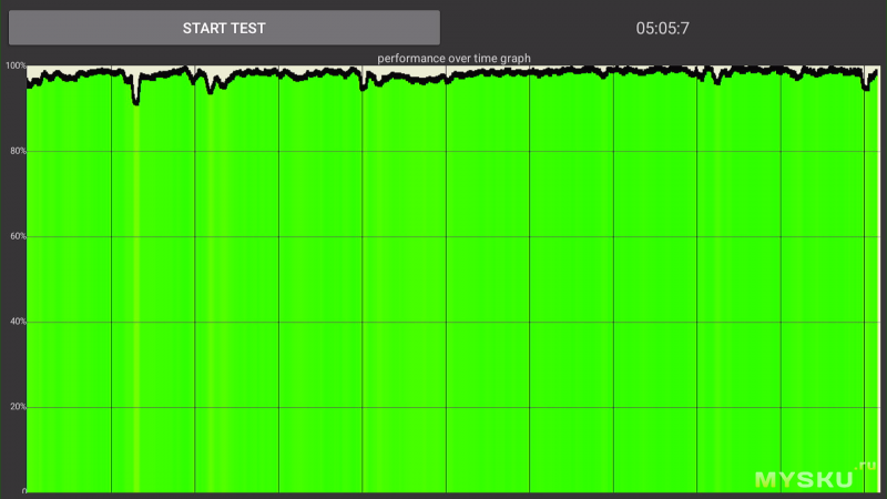 Частоту держит ровно, нет никаких просадок и троттлинга. В пике нагрузки, он нагревается до 45°C (что вполне нормально и естественно для ARM), но температура при этом стабильна.
