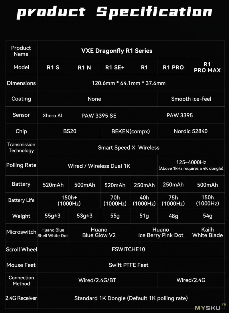- Комплектный ресивер: Стандартный 1K донгл (по умолчанию частота опроса 1000 Гц).