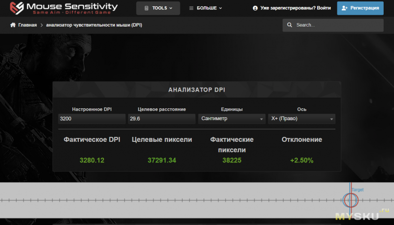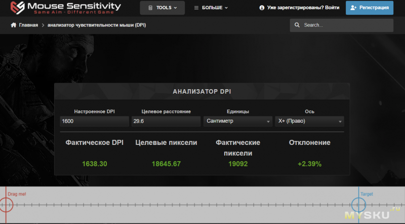 В тесте соответствия DPI, сенсор 3395 так же проявил себя хорошо. Отклонение фактического от заявленного составляет порядка 2.5%, а следовательно курсор будет ровно там, куда вы его ведете, без непредсказуемости и рывков.