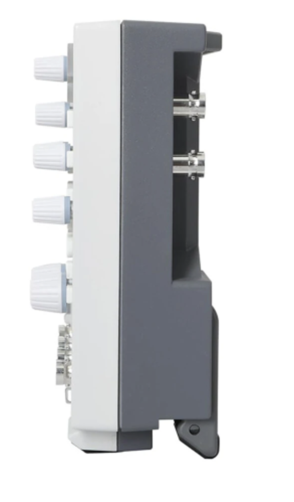 Главная особенность этих осциллографов — 12-битный АЦП. Для бюджетных приборов это довольно заметное отличие, поскольку большинство моделей в этом классе используют 8-битную оцифровку. В теории это означает значительно более высокую детализацию сигнала и более чистую картинку на экране, мне это важно при работе с небольшими амплитудами и шумными цепями при тестировании планарных микрофонов, которые я использую при ремонте блютуз гарнитур.