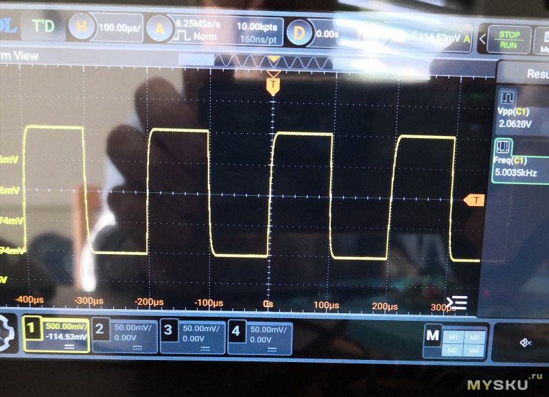 С какого генератора вы подаете 5 кГц? DHO804 видит огрехи генератора.