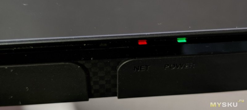 На передней панели есть три небольших и ненавязчивых светодиода, сигнализирующих о работе и о подключении к сети.