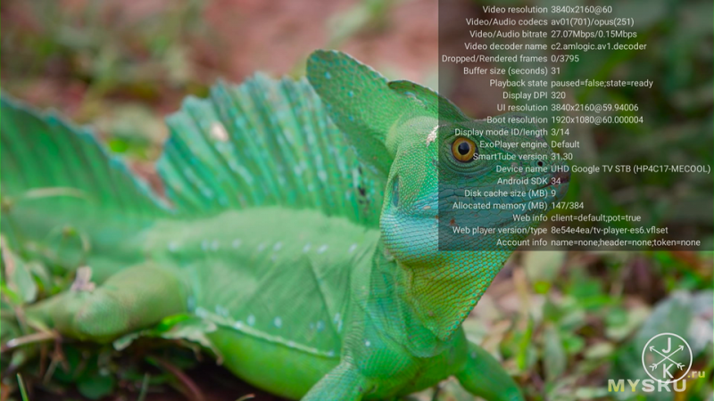 4K, VP9, HDR, 31 Мбит/сек. Картинка красивая, плавная, дропов нет.