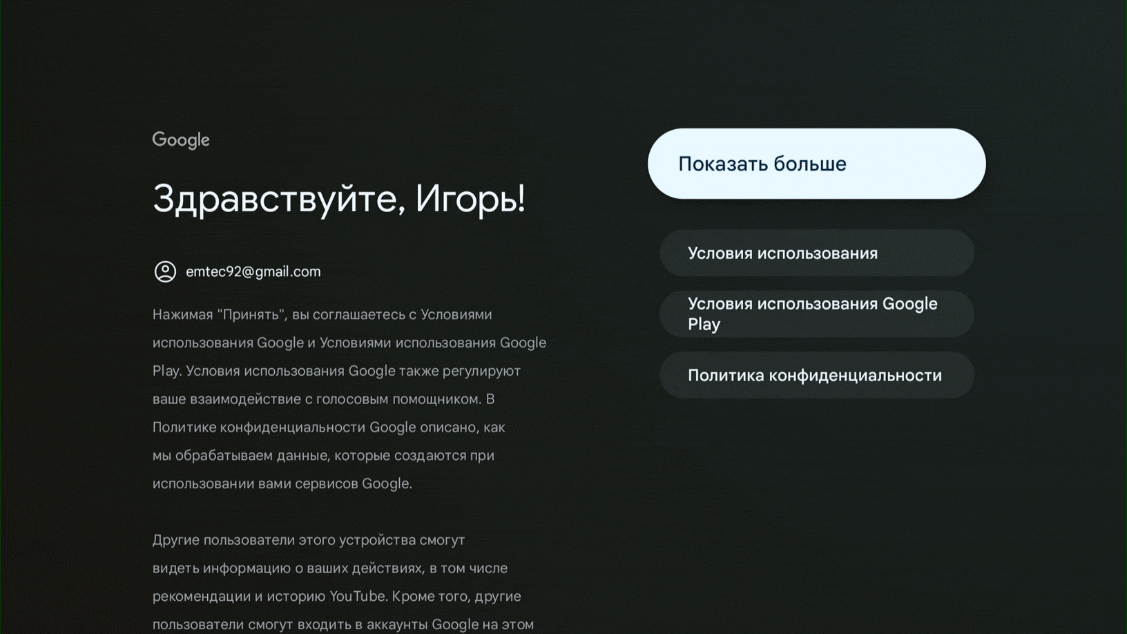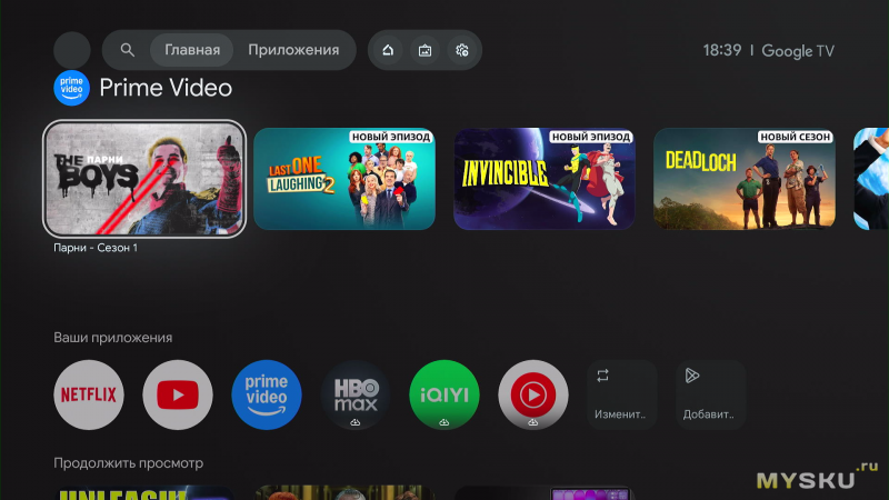 Примерно через 3–4 минуты мы оказываемся на главном экране Google TV.