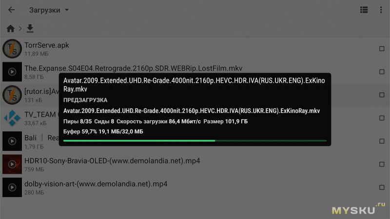 Данный тест — скорее «канон». Традиционно хочу упомянуть, что все зависит от качества вашего интернет-соединения и наличия достаточного количества раздающих (сидеров). «Аватар» на 101 ГБ открывается и воспроизводится без проблем и каких-либо лагов. Что касается перемотки в режиме реального времени, то это, опять же, зависит от сидеров. Иногда это происходит мгновенно, а иногда нужно ждать подгрузки пару секунд. В режиме непрерывного просмотра при нормальном количестве раздающих буферизаций нет.