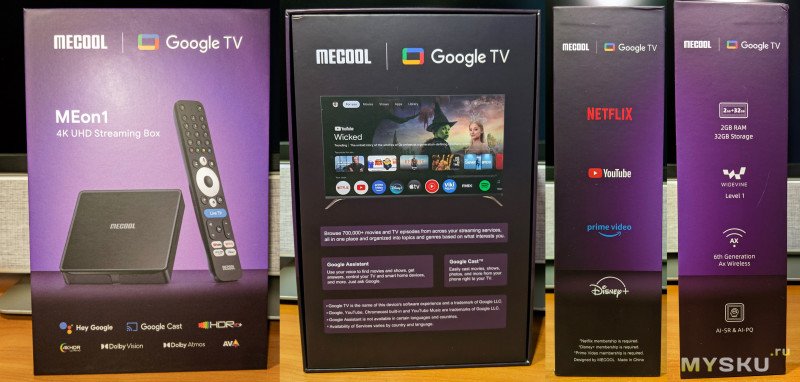 Представляю вашему вниманию сертифицированный ТВ-бокс (тв-приставку) — MECOOL MEon1. Модель является самой свежей (2026) и самой топовой в линейке компании. Amlogic S905X5M, Google TV, сертификации (Netflix, Prime Video, Disney — 4K HDR, YouTube), автофреймрейт, голосовое управление, Dolby Vision и Dolby Atmos, функция ИИ-улучшения качества апскейл-картинки AISR и AIPQ, функциональный пульт, а также LAN и Wi-Fi 6. Приглашаю познакомиться с его возможностями ↓