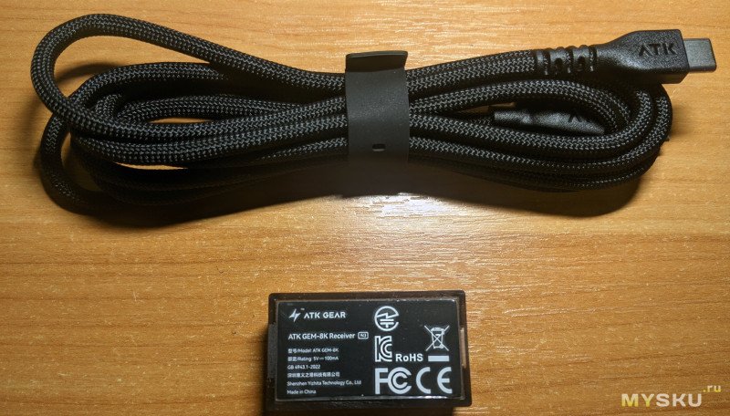 - Кабель: Мягкий паракорд USB-C на USB-A для зарядки и работы по проводу.