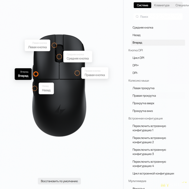 - Переназначение кнопок: Настройки очень гибкие. Функциональные клавиши можно назначить на абсолютно любые действия: имитация клавиатурных клавиш, сочетание различных клавиш, действия и т. д. Я R1 PRO отдал двоюродному племяннику, он по играм, сам же для своей «офисной работы» купил и жду R1. После того как я попробовал эту мышь, я не готов соглашаться на меньшее даже для рабочих задач.