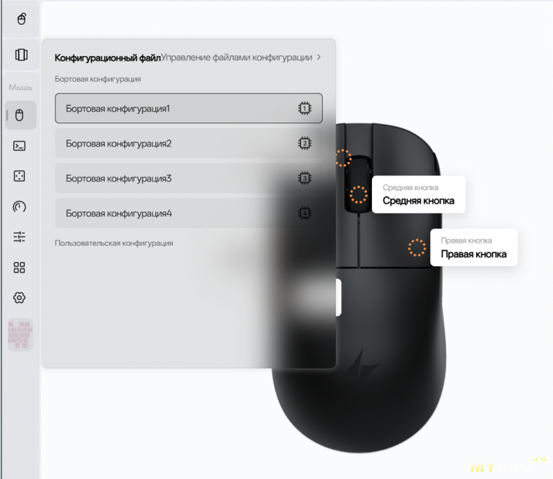 Единственное, на R1 PRO снизу мыши была функциональная кнопка, которая по умолчанию переключала DPI, но можно было её поставить на переключение четырёх предустановленных профилей. Это было очень удобно, жаль, что здесь решили от этого отказаться.