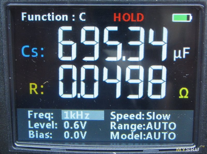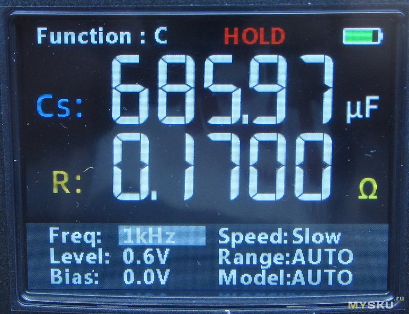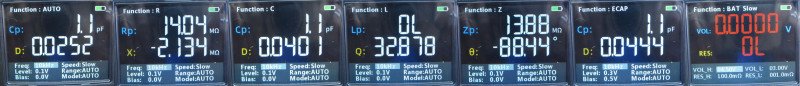 Резюмируя. Очень понравилось. у меня в ящике стола лежат 1035+ и еще один китайский прибор для LCR — пожалуй я заменю их одним обозреваемым. По точности к сожалению не с чем сравнить, но показывает довольно близко к номиналу. Есть практически любые уровни проверочных сигналов и частоты вплоть до 100кГц. Можно проверять батареи до 100 вольт.