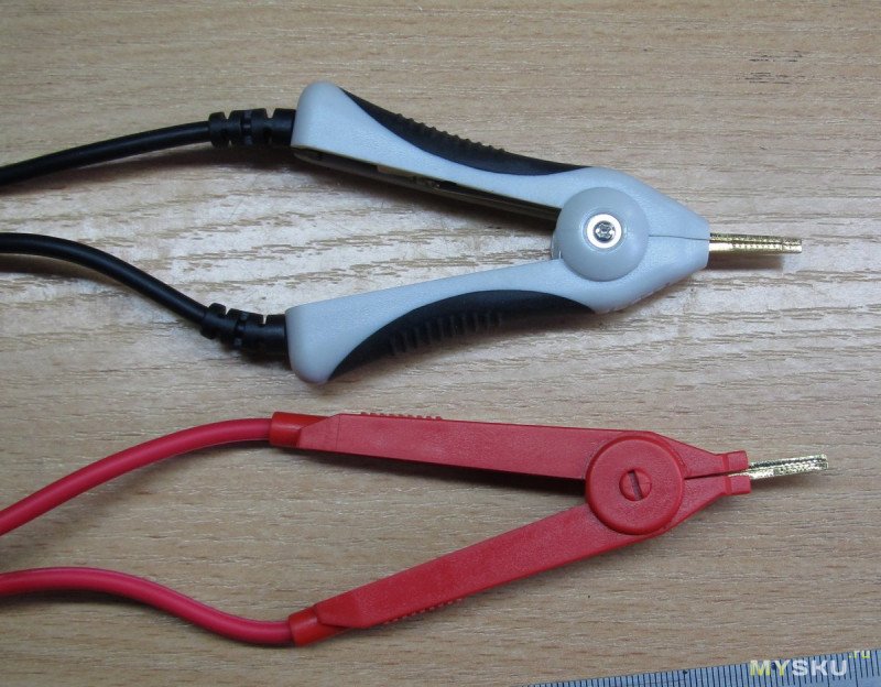 В комплектации были только обычные измерительные щупы-провода, и щупы Кельвина для аккумуляторов