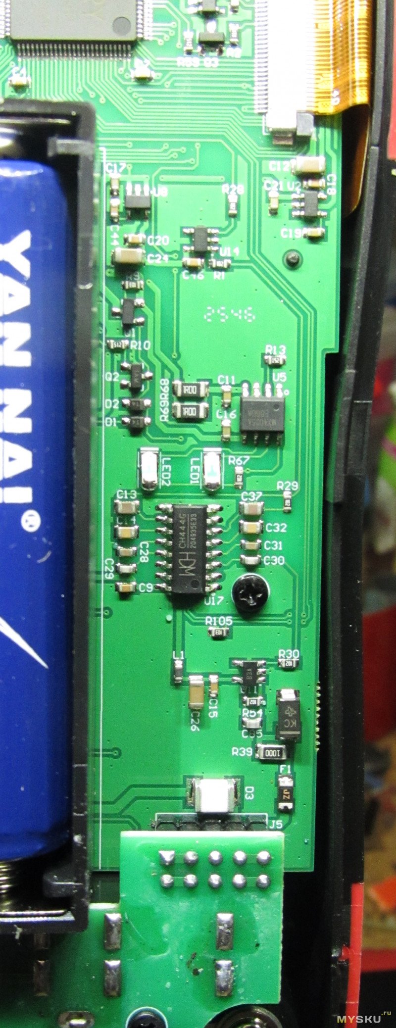 Кишочки спрячу под кат. На мой взгляд весьма достойно. Плату не снимал, возможно с обратной стороны что-то и есть, но честно говоря не вижу особого смысла заморачиваться. культуру производства и разработки можно и так оценить, смысла разбирать больше не вижу. ну и наверняка на eevblog уже это сделали. Кстати, раз уж разобрал — измерил потребление, 116мА всего. что опять же как по мне — весьма достойно