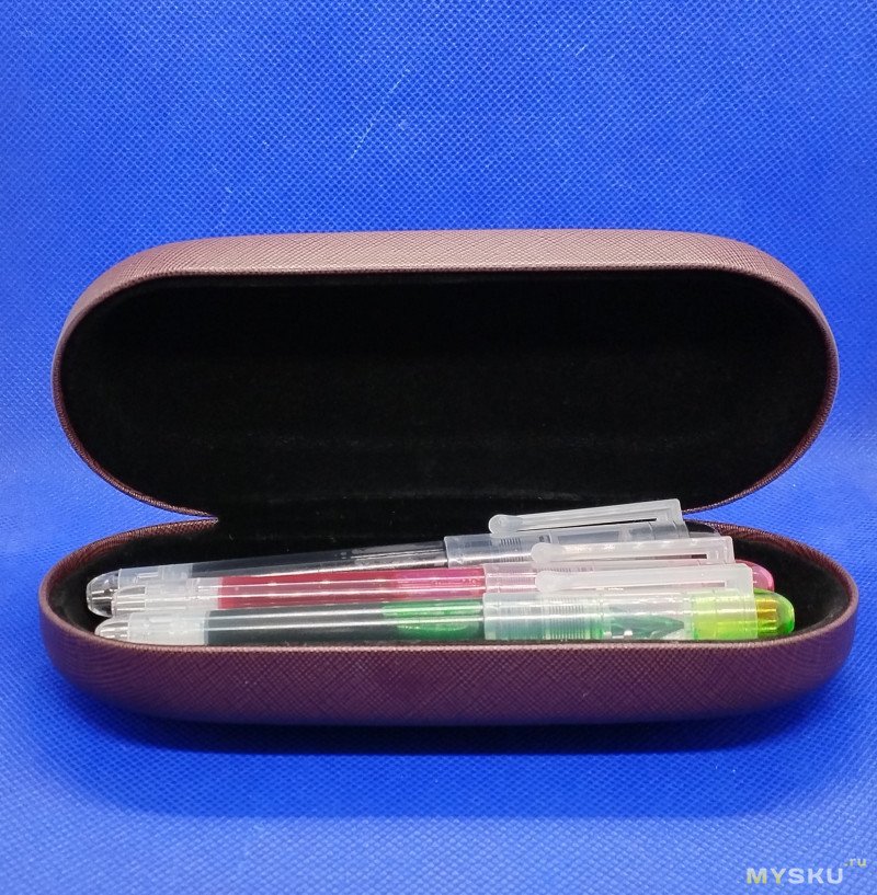 Вопрос: как ручки расположить на рабочем столе? Безусловно нужен какой-то чехол, коробка или пенал. Возможно специальный стакан. Пока еще не решил. А как временное место хранения выбрал чехол из-под очков из ФиксПрайса