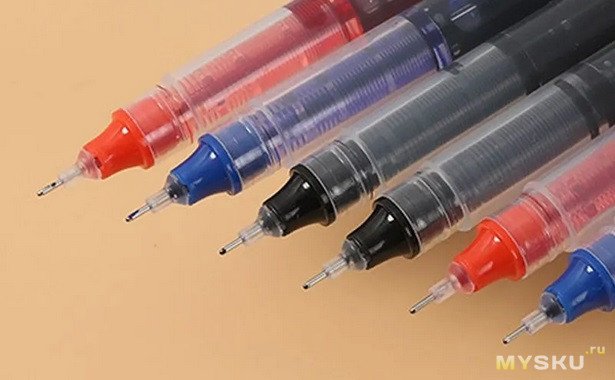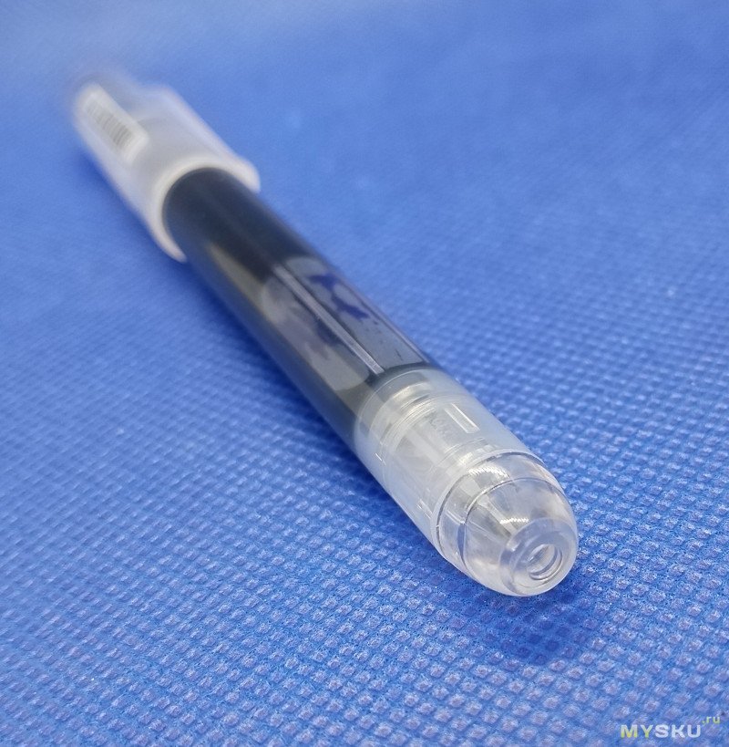 Так как ручки одноразовые, то прозрачный пластик — это важный аспект: всегда можно видеть сколько чернил осталось. Могу предположить, что чернил хватает очень надолго. Размеры