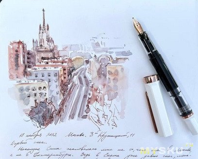 Можно и использовать водорастворимость чернил создавая быстрые зарисовки с эффектом акварели. Можно использовать чернила с разными эффектами