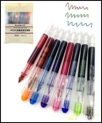 И перехожу к сути обзора. На Озоне я увидел набор цветных ручек с цветными чернилами по смешной цене. Нет, просто по очень смешной цене. Стоимость одной ручки меньше, чем проезд на общественном транспорте. Но, ручка то полноценная перьевая. А такое бывает?