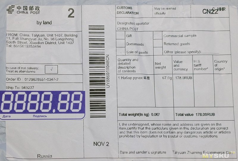 Пришли из Китая, конечно, не быстро. В плотном целлофановом пакете 6 перьевых ручек