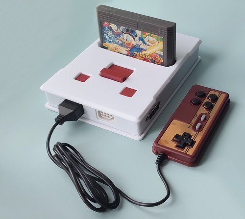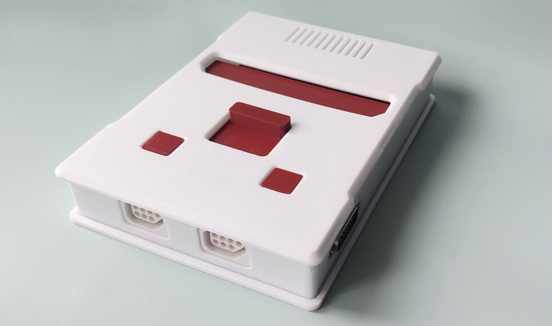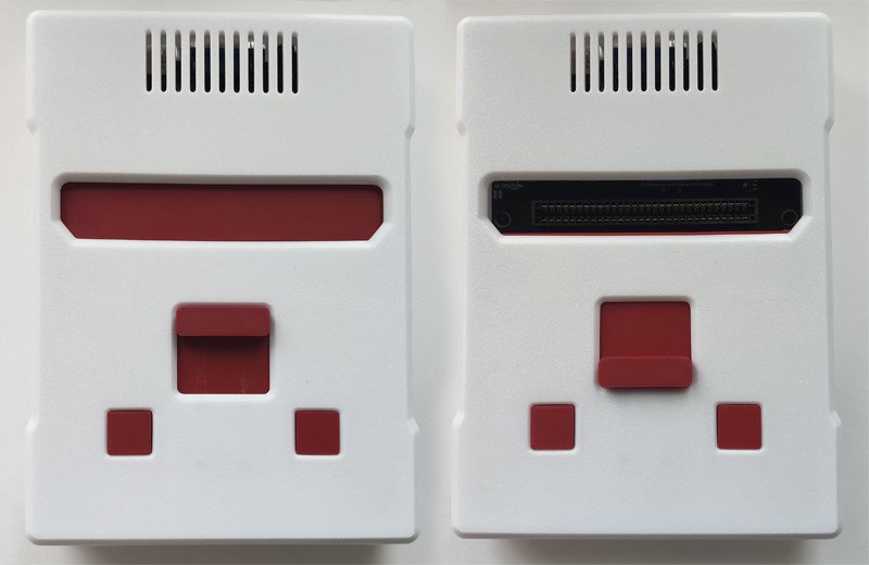 Внешне консоль имеют общие сходства с приставками Famicom или Dendy Junior. Корпус сделан на 3D принтере, но на ощупь приятный, слегка шероховатый.